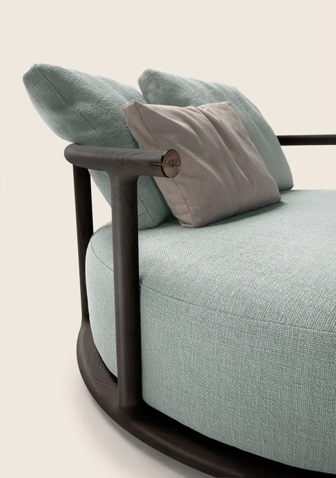 An island of pure comfort, Icaro is a spacious, round sofa with a beautiful solid wood structure, crafted in fine Italian cabinetmaking tradition. The exposed solid ash structure of the Icaro loveseat comes in a number of elegant finishes.